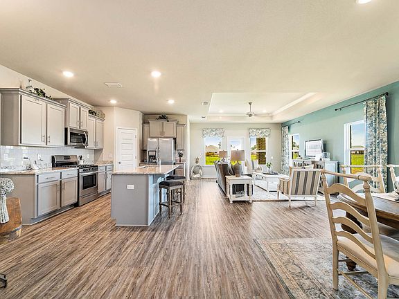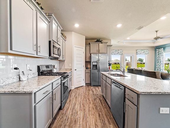 This is Brand New Homewill be ready in April 23, 2021. As you enter thehome, the foyer leads to the fabulous open concept Living/Kitchen area featuring medium Pebble painted cabinets, granite countertops,a deep stainless undermount sink, stainless appliances, a large pantry, an island that overlooks the family room which is accented withbeautiful trayed ceilings. The master suite also has trayed ceilings and a roomy master bathroom, granite tops with undermount doublebowl vanity, 5' shower, soaking tub and large walk-in closet. The second, third and FOURTH bedrooms are to the front of the home, witha second full bath.This home features our Home is Connected Smart Home Technology, whichincludes control panel, doorbell, smartcode lock, two smart light switches, and thermostat, all controlled by one app. Our amenities include a resort style pool, fitness center, grilling area, basketball court, playground and bocce ball court.