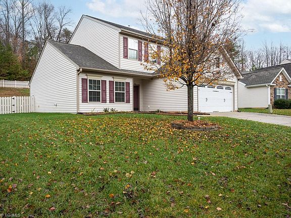 Great move-in ready three bedroom, two and a half bath home with primary on the main. Centrally located with easy access to downtown Winston Salem and Kernersville. The home has a grand 2-story ceiling in the living room with lots of windows and an open floorplan. The kitchen includes granite countertops, tile backsplash plus a bar and breakfast area. Updated primary bathroom with tiled shower, double shower heads and double vanity. The upper level has a spacious loft area. Large fenced in backyard with patio and storage building with solar powered lights. Most of the lighting has been updated throughout. Whole house surge protector. Expanded driveway to allow for two cars. Floorplan available. Open House: Saturday, December 3, 2:00-4:00.