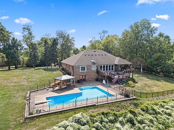 Stunning Missouri River Bluff Views Await! This incredible ranch home on 3.67 private acres is the dream you’ve been waiting for! With 4 spacious bedrooms, 3.5 luxurious baths, and 2,508 sq. ft. of beautifully updated space, this home has it all. The open-concept living area, complete with fresh LVP flooring and brand-new canned lighting (2022), flows effortlessly from the kitchen to the dining and living rooms, where large windows frame breathtaking views of the Missouri River. The kitchen is a chef’s paradise with quartz countertops, freshly painted cabinets, new appliances, and a chic island perfect for entertaining. Retreat to the primary suite, where a bay window, walk-in closet, and a spa-like bathroom with heated floors and a tiled shower await. The walk-out basement is partially finished with a bedroom suite and a built-in bar, ready for your next gathering. And did we mention the L-shaped in-ground pool? This is more than a house – it’s your perfect forever home!