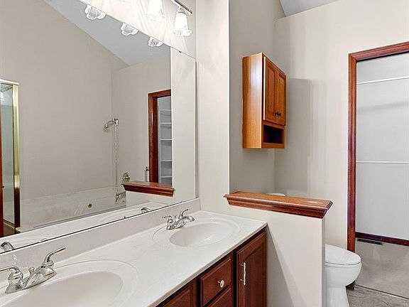 Beautiful end unit Villa with an open floor plan. 2 Bedrooms on the main level, 1 is being used as an office but can easily be converted back to or still used as a bedroom. Master Bath ensuite with separate jetted tub and shower, new floor (2022) and closet organizer. Open Living room Dining Room with stunning wood flooring (installed in 2020), Vaulted ceiling, Bay Window, fireplace & and walks out to the deck. Beautiful kitchen with an abundance of cabinets, center island, tile floor & connected breakfast room with a Bay Window letting in soothing natural light. Main floor Laundry with shelving to make life easier. Gorgeous lower level with a rec. room, fireplace, nice sized bedroom, full bath, Wet Bar, large Cedar walk in close unfinished storage area and walk out to the patio. Spend you relaxing time on the newer deck (built in 2019) backing to trees. New roof put on in 2021. The yard, Irrigation system and snow removal are taken care of through the HOA. Call this one home! Location: End Unit, Ground Level