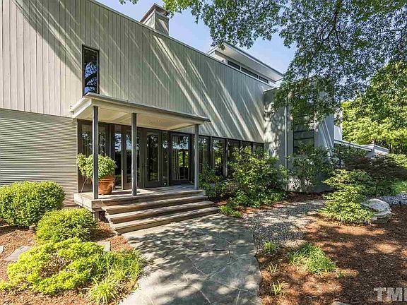 Contemporary masterpiece sited on a rare 1.35-acre lot in the heart of Raleigh. Designed by celebrated modernist architect, Frank Harmon. Custom built by Greg Paul Builders in 2006. All formals with sophisticated open space for entertaining. Chef's kitchen opens to dining and living rooms. Glass doors span the entire first floor space, connecting the covered porch that overlooks an amazingly private urban oasis -- salt water pool, sitting areas & outdoor fire structure. Mature, exquisite landscaping.