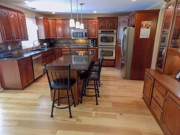 An inviting Porch welcomes Family & Friends! Fill this Wonderful Two Story Home w/ all your favorite things! The Custom Kitchen highlights Cherry cabinets, granite countertops, newer appliances, double oven, gas stove, hot water recirculation system & beautiful hickory flooring. The Sunroom adjacent to the spacious dining room was constructed by Sparling Construction in 2014 w/ gas fireplace, tons of windows & patio door that opens to a maintenance free deck, shrubs,sprinklers & maintenance free fence. Office/den,informal dining room & 1/2 bath finish off the main level. Upstairs you will find the master bedroom suite w/ whirlpool tub, dual sinks & walk in closet. There are 2 additional bedrooms both with access to the full bathroom. Laundry is also located on this level for your added convenience. The lower level hosts family room, bedroom, full bath & storage. Newer water heater, driveway, flooring, wired for back up generator, gas line on deck, dual zone heat and more!