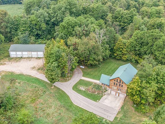 Income Earning Property. Mature Timber, Secluded Custom Built..Sit on your new front porch and feel good about breathing in! Clean-air country living. Peaceful mornings and quiet evenings. Bonuses include 49.8 acres, a 40 x 80 pole barn with infloor heat 3 dedicated bays one with a 12,000 lb hoist with reinforced floor and separate utilities. House features open floor plan with steel roof, infloor heat as well as forced air, on demand water heater. Wildflowers and songbirds are free!