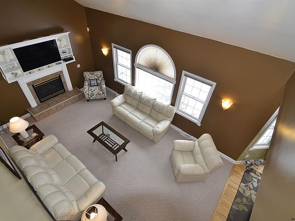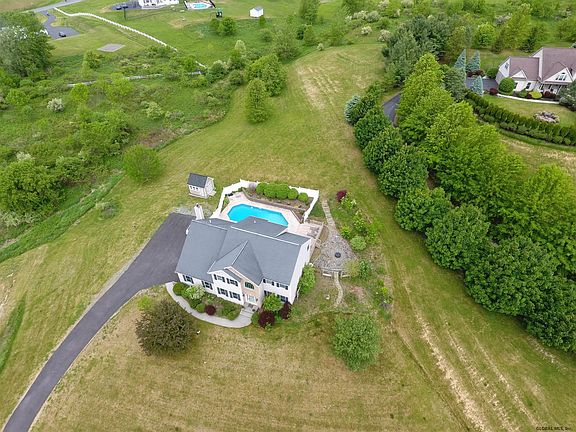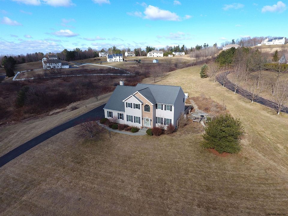 If you are looking for a home in a private setting, with almost 3 acres, here it is! 3125 East Schodack Rd is a beautiful 3000+ sq ft, 4 BR, 2.5 bath Colonial, streaming with natural light, and gorgeous views. The open floor plan has 9' ceilings, custom moldings & architectural details throughout. Some of those features are, hardwood floors, a formal DR w/tray ceiling, FR w/gas FP & vaulted ceiling, updated baths w/granite counters, and a gourmet kitchen w/SS appliances. The finished basement includes home theater room that was featured in the Times Union, exercise room and 2 playrooms. A fenced in yard surrounds the in-ground pool for privacy. Many upgrades including new appliances, a Culligan Water system and a new paved driveway.(2019) New AC Condenser and pool filter installed 2020
