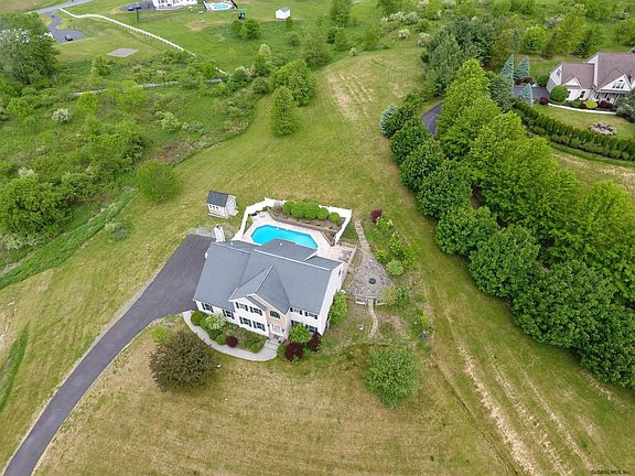 If you are looking for a home in a private setting, with almost 3 acres, here it is! 3125 East Schodack Rd is a beautiful 3000+ sq ft, 4 BR, 2.5 bath Colonial, streaming with natural light, and gorgeous views. The open floor plan has 9' ceilings, custom moldings & architectural details throughout. Some of those features are, hardwood floors, a formal DR w/tray ceiling, FR w/gas FP & vaulted ceiling, updated baths w/granite counters, and a gourmet kitchen w/SS appliances. The finished basement includes home theater room that was featured in the Times Union, exercise room and 2 playrooms. A fenced in yard surrounds the in-ground pool for privacy. Many upgrades including new appliances, a Culligan Water system and a new paved driveway.(2019) New AC Condenser and pool filter installed 2020 -- Excellent Condition