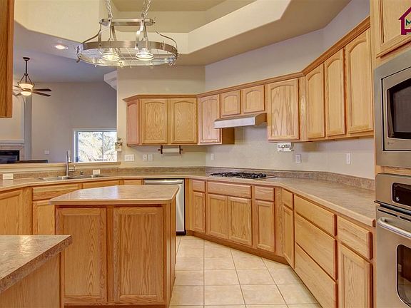 Spacious Energy Star Home at The Ridge. Versatile floor plan featuring 4 BEDROOMS plus 2.75 BATHS in addition to 3 bay garage with storage. Approx. 2616 sqft built in 2006. You'll appreciate all the closet & cabinet space, high ceilings, skylights & plantation shutters. Two LIVING and two DINING areas. Fabulous, open KITCHEN with eating area-long buffet with cabinets; center island with pot rack, stainless appliances (refrigerator stays!) Bosch dishwasher, upgraded faucet, gas cooktop, electric oven & oak cabinetry. generous-sized bedrooms. Master BEDROOM suite with access to back. Master BATH with upscale whirlpool tub, glass block, separate shower, double sinks & walk in closet. East-facing covered patio with manageable lawn, water feature & storage shed. Security system-built in ironing board-water treatment system-2 X 6 ext walls-newer stucco coating, newer roof. Conveniently located close to schools, medical facilities, golf, I-25/Hwy 70.