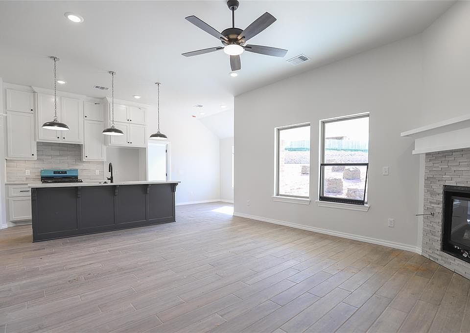 This Brinklee floor plan embraces 1,595 sqft of total living space, which includes 1,500 sqft of indoor living and 95 sqft of outdoor living space. This Taber home offers 3 bedrooms, 2 full bathrooms, 2 covered patios, a utility room, and a 2-car garage with a storm shelter installed. The living room provides a stacked stone surround corner gas fireplace, large windows, a ceiling fan, and wood-look tile. The high-end kitchen supports a large corner pantry, 3 CM countertops, custom-built cabinets to the ceiling, elegant tile backsplash, a center island, and stunning pendant lighting. The primary suite provides a sloped ceiling detail with a ceiling fan, windows, and our cozy carpet finish. The attached spa-like bath supports a free-standing tub, a spacious walk-in shower, a dual sink vanity, and a huge walk-in closet. The covered outdoor living section offers a wood-burning fireplace, a gas line, and a TV hookup. Other amenities include our healthy home technology, a tankless water heater, R-44 Insulation, a fresh air ventilation system, and so much more!