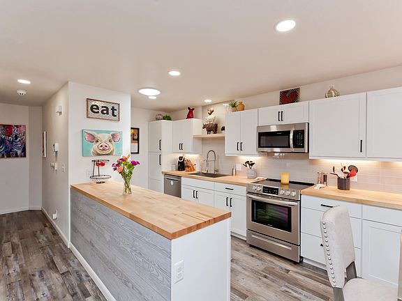 This townhouse in the beautiful lakeside subdivision is truly one of a kind! Tall ceilings and sun soaked living room welcome you into a fully renovated property. The list of upgrades is never ending! Vinyl plank flooring throughout, chefs dream kitchen with sleek butcher block counters, built in beverage cooler, luxury shower in primary bath, the list goes on and on. Stay cool from the hot summer sun with a new central air unit. The outside is an entertainers dream! With newly fenced back patio and deck. The HOA offers many amenities such as a pool, gym, lots of green space, and RV storage. Great central location that’s close to shopping, restaurants, CMU, and the hospital.