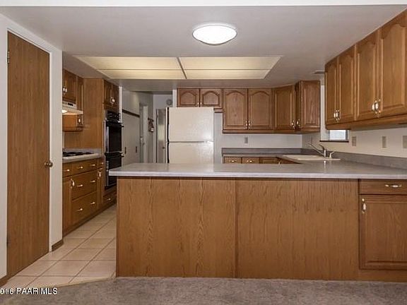 Fixer with great potential for sale in Prescott, AZ in sought after Ho Kay Gan/Tonkawa area. Private drive to .57 acre usable, fenced lot with huge Thumb Butte and mountain view bordering Stringfield Ranch with area to park RV and toys. No HOA! Functional floor plan, 4/3 with sunroom and hot tub off master, living room with original rock fireplace and pellet stove, family room with second pellet stove, 2 storage sheds. Near Yavapai Regional Medical Center, Abia Judd & Granite Mountain schools, National Forest. Buyer to waive disclosures (except lead paint) as seller is elderly and doesn't recall details. Sold As Is. Needs absolutely everything (roof, windows, siding, etc.) so please only look if you're up for a MAJOR renovation project. Bring all reasonable offers.