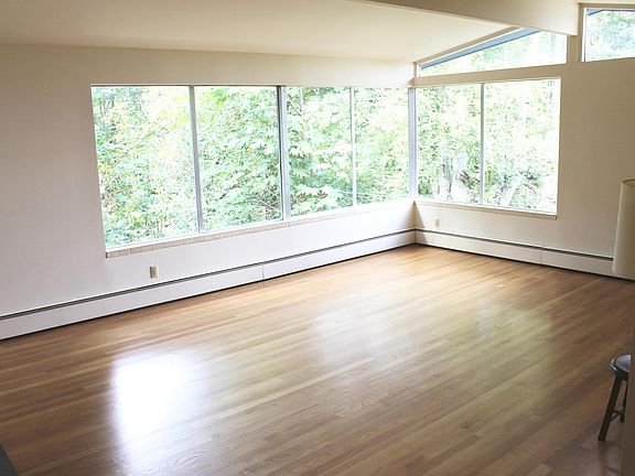 This amazing house is perched on a ravine filled with trees on the end of a quiet dead end street. It features four bedrooms, 1 full bath, a bath and a bath a large laundry area and a 2 car garage with lots of storage space. The electrical, plumbing have been recently upgraded and a fresh roof and paint. The spacious open kitchen has been remodeled with brand new appliances and flooring. The hardwoods have been refinished to it's original 1958 glory to match the house's mid-century charm. Out back is an open patio with a play structure and leads to a landscaped wooded trail on the property. There are three on property parking spots and more available on the street. It's hard to find such a secluded and spacious house right in the city.