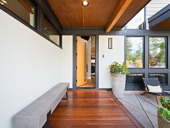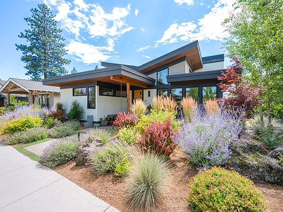 Located in Bend's coveted Discovery West, this architecturally stunning home by Leader Builders blends modern sophistication with timeless natural elements. Vaulted ceilings and expansive windows flood the interiors with light, while wide-plank oak floors and a dramatic triple-sided fireplace anchor the open living and dining areas. The chef's kitchen features quartzite countertops, custom cabinetry, and a sleek island with seamless flow to the patio and landscaped grounds with water feature, fire pit, and turf. The primary suite offers a spa-inspired bath with heated floors, walk-in shower, and generous closet. Two guest bedrooms, a stylish bath, and dedicated office add versatility. A 3-car garage with custom cabinetry, mudroom, and dog wash station. Home may be sold fully furnished with high-end decor curated specifically for this home. Inquire for pricing on furnishings.