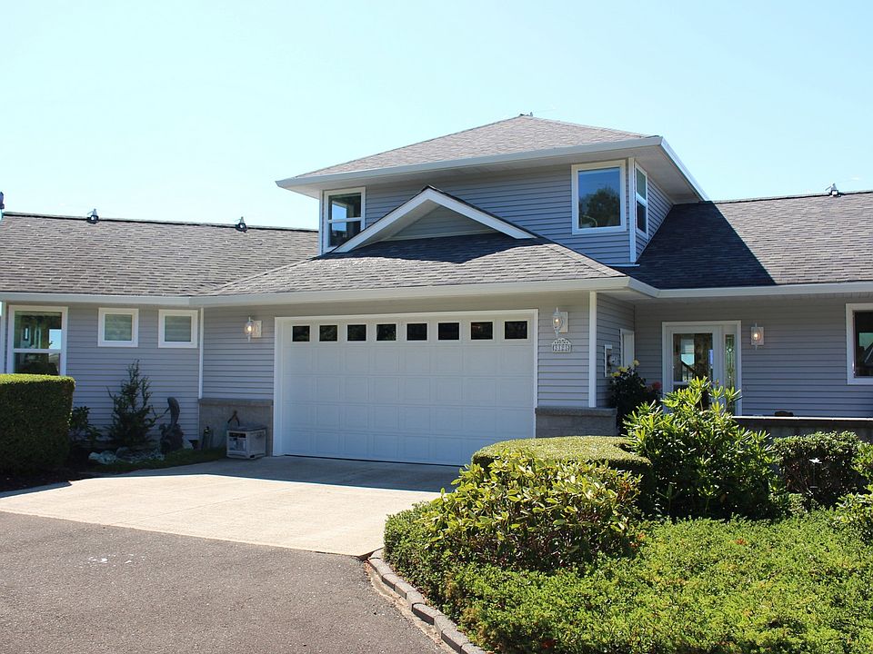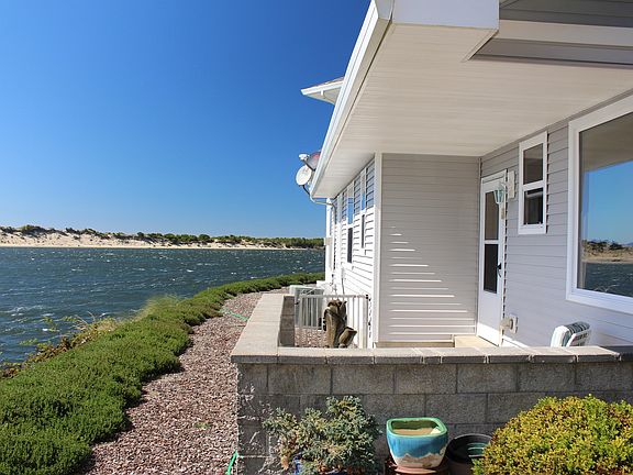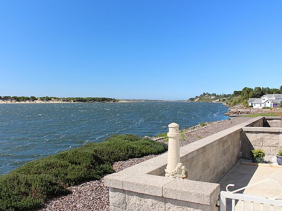 Stunning riverfront w/180 degree views of river, dunes & amazing sunsets. End unit w/master suite on main level & customized master bath w/tiled WI-shower, jetted tub, etched glass door to private patio off master. Italian granite in kitchen, Lg WI pantry, laundry room w/sink. patio off dining area. Upper level landing area for office or exercising rm. 3 additional parking spaces besides Dbl driveway. Finished garage. See amenities list