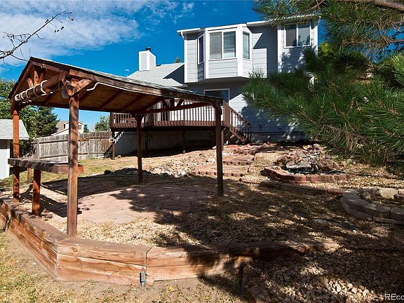 Cute 2-story home on large 8,000+ square foot corner lot in District-49 school area. Lot boasts large mature trees, gazebo in back perfect for entertaining, large wood deck and an additional wood deck pre-wired for your Hot Tub, fire pit, storage shed. Backyard space offers the perfect spot for outdoor entertaining! Home is a great floor plan with 2 stories and garden-level basement. Large open living room space with vaulted ceilings, bay windows, gas fireplace and walk-out to back deck. Spacious eat-in kitchen with upgrades to include granite countertops, cherry cabinets and stainless steel appliances. Hardwood floors continuous from kitchen and dining areas into powder bathroom. Upstairs level includes large master bedroom with plenty of closet space, decorative shelving, and attached 5-piece bath. 2 additional bedrooms and full bathroom completes the upstairs level. Basement has newer carpet. Enjoy large family room space, bedroom and full bathroom down here.