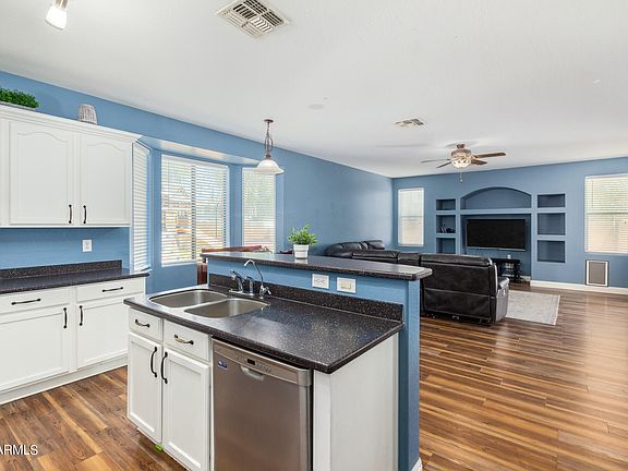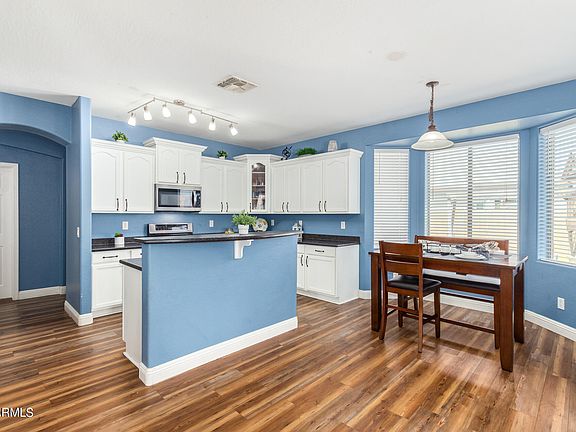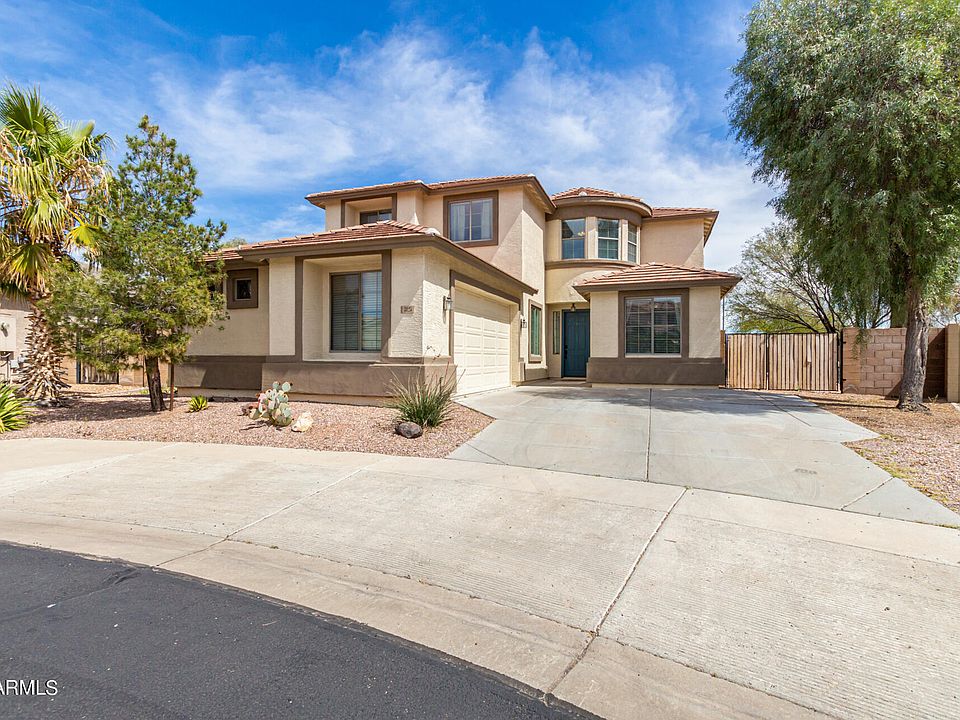 Gorgeous 4 bed/3 bath with DOWNSTAIRS BEDROOM, DOWNSTAIRS FULL BATH and Pool on a huge lot with Solar in the same neighborhood with elementary school. Additional room with double doors is being used as an office/den but could be a 5th bedroom. Beautiful kitchen with double oven stove, stainless steel, granite, and pantry. Open floor plan with upgraded floors, and ceiling fans throughout the main living areas. Huge owner's suite with walk-in closet. Ensuite bath has dual vanities, private toilet, jetted tub, and large walk-in closet. Relax in this oversized backyard with covered patio, sparkling pool, removable mesh fence and lots of green grass. Tons of extra room to park all your toys behind the RV gate. Solar is $117 a month.