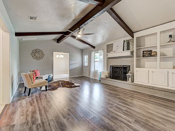 OH MY GOSH!!! Beautiful REMODELED home in Moore Schools!! Spacious living room with wood beam ceiling, gray wide plank engineered wood flooring! Kitchen includes urban lighting with stunning high-end 3cm Granite counter tops with subway tile backsplash, new stainless steel gas stove, stainless steel appliances, lots of cabinets for plenty of storage! Vessel sinks in both bathrooms. New air conditioner with vents in ceiling and a new heater. All new lighting and ceiling fans through out! New paint and WAIT UNTIL YOU SEE THE GORGEOUS MASTER BATHROOM with art deco tile flooring, vanity space, custom tile walk in shower, and QUARTZ counter tops! HUGE laundry room with extra shelving. Large covered front and back patio and custom shutters! All of the upgrades have been done, just needs YOU!
