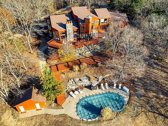 GREAT OPPORTUNITY! This is a gem of a piece of property in Rockwood School District, 33+/-acre, NO INDENTURES/RESTRICTIONS! All within a secluded/private setting with nearby & adjoing 2k+/- acres of vacant ground including conservation land. Custom Mid-Century Retro style home with SPECTACULAR VIEWS & natural lighting, 4300sqft+/- total living area; Various custom features throughout: concrete inground pool, is OPEN FOR THE SEASON & pool house, TWO EnSuites (1 with woodburing fireplace & Teak custom tub), 3 custom woodburning fireplaces, Redwood siding, 3 car garage, 2 wells, 2 holding tanks, wired to accomodate generator, 1000 gallon owned propane tank, 3 HVAC; Property needs some updating & repairs. PRIVATE STREET DO NOT DRIVE DOWN STREET UNLESS YOU HAVE CONFIRMED APPT(can not see home from the road), recorded Road Maintenance Agreement. Buyer is responsible for verifying measurements, etc.. Property priced with updates/repairs in mind.