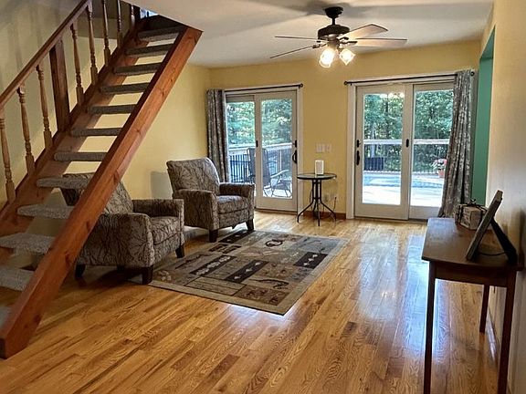 Motivated Seller! Price Reduced! This 2 bedroom 2 Bath home has a loft that doubles as a 3rd bedroom, has been fully updated. The kitchen has granite counter tops and stainless steel appliances and the hardwood floors have a fresh coat of poly! Both bathrooms have been tastefully updated and the walk out basement has a wood burning stove that is set in stone. The large deck is a great space to entertain! This is a turn key property that even has a direct high speed internet line and an on demand generator. The Pole Barn is 30 x 55 with a 13 foot door offers plenty of storage for all the toys! The river runs through it offering a great place to fish and all of this is situated on 4.5 acres of mature woods with many sand ridges. Call for your private showing today!