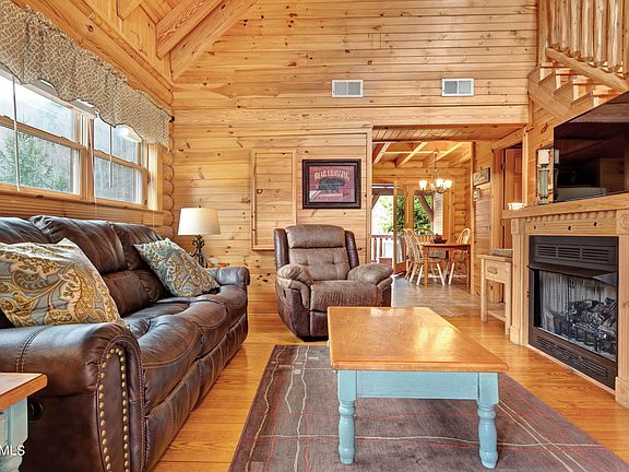 Recent Price Improvement!!! Overlooking a rushing creek and waterfall, this well maintained, and nicely appointed log home is just minutes from the Great Smoky Mountains, Pigeon Forge and Gatlinburg. 1/2 of a large duplex, this home offers 2 large Bedrooms, 2.5 Bathrooms, 2 gas log Fireplaces, covered porches on each level. Granite counter tops and many other upgrades. Located in a well-established log home community, this home has an exceptionally good overnight rental history. Community pavilion, club house, picnic area and swimming pool. Turnkey overnight rental in great location.
