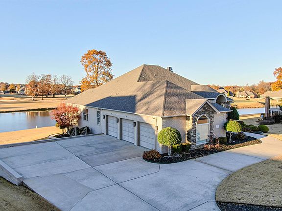 Looking for golf course living and a lake view, this beautiful custom home has almost one acre, New Roof 2021, updated cabinets, new buffet wine bar in Kitchen, all new hardware on cabinetry, plantation shutters added arched windows, full walk out basement with shop, kitchenette, and game room/5th bedroom, storm shelter, the main floor has a large entry with stone accents, formal dining room, Great room with built-ins and storage galore, open kitchen/breakfast, ice maker, gas 6 burner stove, double oven, laundry with pull out shelving, extra refrigerator, and sink, two guest bedrooms with hall bath, 1/2 bath for guests, and Owners Suite large enough for sitting area, two closets with built-ins, Bath has freestanding tub, tiled shower with seat and double vanities and private commode, lots of privacy while you enjoy the covered patio w/hot tub below or Main floor tile covered patio with grilling area, this is a must see!