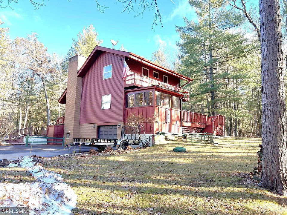 This custom built 2-bedroom home with a large private yard is being sold turnkey. Nestled between Birch Island Lake boat landing and the golf course and clubhouse, you are just a short walk to the lake or the course for endless fun and entertainment. This home has vaulted ceilings, a 3 season sunroom, steel siding, new washer and dryer and new flooring in most rooms. The lower level flex space can be bedrooms, family space, or whatever you imagine it to be. The tuck under heated garage and additional shed has room for all your storage needs. The large wrap around deck is perfect for entertaining or just relaxing after a full day of activity that Voyager Village has to offer. Main floor bedroom was converted to a den which you could easily return to for another sleeping space. Don't miss this one!