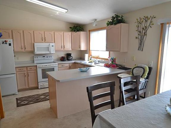 From the moment you pull into the driveway you'll feel at home. You are welcomed by warm neutral paint colors & spacious feel of vaulted ceilings. The living room flows into the dining & kitchen areas-great for entertaining or keeping an eye on the little ones! The kitchen serves up newer appliances, lots of cabinets & counter w/snack counter that offers extra seating, & a huge pantry. There's easy access to the deck for grilling & serving family & friends playing in the fenced backyard. Down the hall is a spacious master w/full private bath; a guest bedroom & full guest bath. Downstairs is an ideal hangout for teenagers & overnight guests w/a spacious family room, full bath & 2 beds. The laundry has a built-in ironing board & cabinets. 3-car garage is finished & heated w/floor drain & hot/cold water. This home is in a great location for raising a young family w/nearby school & has a fenced yard for the kids & dog to play. Contact a realtor today for private showing!