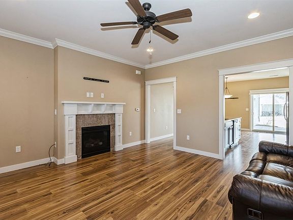 Nice east side zero lot ready for you to call it home! Zero entry from garage. This two bed, two bath home on a slab features LVP flooring throughout the living room and kitchen. Living room has crown molding, gas fireplace with tile surround and white mantle. Eat-in kitchen with breakfast bar, granite countertops, stainless steel appliances, and great storage! Slider from dining area to patio - perfect for grilling and enjoying the spring time ! Primary bedroom with ensuite bathroom w/ dual vanities. Second bedroom and second bath. Attached 2-car garage.