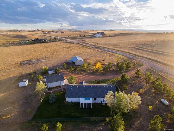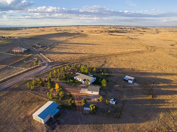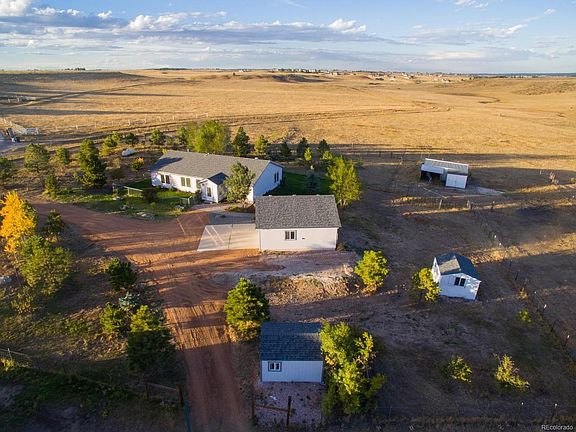 Come and see this beautifully remodeled ranch on over 14 acres. Main level living with open floor plan with lots of natural light throughout. Spacious kitchen with gorgeous granite oversized center island with eating space. Large master suite with new carpet, 5 piece bath with jetted tub and walk-in closet. Awesome sun-room for morning coffee or evening glass of wine. Alluring private yard with professional landscaping with sprinkler system; mature hawthorns; handsome pine trees; sweet lilacs; apple, cherry, and plum trees. Over 800 sf barn/shop, loafing shed, 3 storage sheds, cross fenced into 2 pastures. RV parking pad. Updated with new tile, carpet, interior paint, walk-in shower, stainless steel appliances, soft-close kitchen cabinets, granite counter-tops and roof. 8" concrete insulated walls and radiant floor heating keeps the home comfortable and energy bills low. Close to Russellville Road with easy commute to Colorado Springs, Castle Rock, Parker, and DTC.
