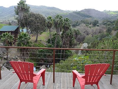 Canyon Ranch! Amazing one of a kind property! Contemporary cabin style, open floor plan, new carpet, fixtures, dishwasher, stove, toilets, new wood decks, new garage door, walk in pantry, Spring fed year round running stream runs through back yard with granite boulders, waterfall, pool for cooling off in the summer, a palm tree oasis! Amazing to find in Southern California! New viewing deck on hill behind stream. Fruit trees, Enough room for horses, or planting a small vineyard! Located in a quiet area!