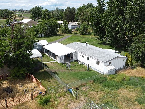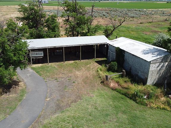 Load up the farm animals and bring them to this 3.88ac property with a gorgeous setting! Irrigation rights and solid set sprinklers. Barn has 3 horse stalls plus extra panels set up in the pasture. Large 6 bay covered storage for hay or RVs and a tack room. Large covered patio plus a detached garage/workshop. Home needs some TLC inside but the possibilities are endless! **1yr Home Warranty Included**