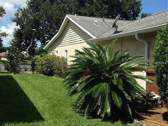 This home 0ffers 3 beds, 2 baths and a attached garage, 20' x 20'. You enter into a huge living room cathedral ceilings and a separate dining area leading to the remodeled kitchen with granite counters and glass tile backsplash against the white cabinets. There is a closet pantry, breakfast area and a large laundry inside too. All of the main living area is tiled. The 3 bedrooms are wood laminate. The master bedroom offers the cathedral ceilings and a large walk in closet, 6' x 9'. The on suite is complete with granite counters, dual sinks, jacuzzi garden tub and a large dual headed shower, 4' x 5', with dual controls. The living room, kitchen/breakfast area and master suite all have sliding glass doors to rear, with spectacular views of the large lake and fenced in backyard. The a/c units, hot water heater, stove, refrigerator, dishwasher and above the stove microwave were all replaced in 2014. the home is concrete block with wood and red brick accent on the front.