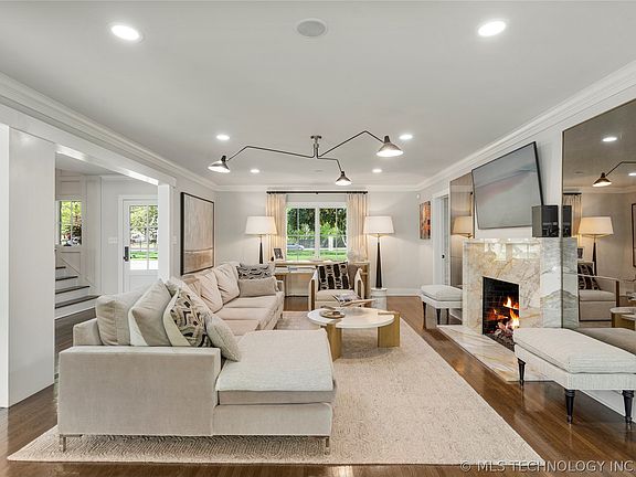 Recently featured in Architectural Digest- this stunning 1930's estate, completely remodeled, leaves no detail spared! The home sprawls over an acre (1.37) of land, boasting a backyard perfect for entertaining. Enjoy a gunite pool & spa, complemented by two covered porches. Inside, discover a breathtaking first-floor theater room, along with 3 bedrooms + 2 baths upstairs. A guest suite downstairs offers flexibility, ideal for a mutli-generational family. The primary wing is private and spacious, featuring an office or workout room adjacent to the living area. Throughout, gorgeous hardwoods add warmth and character, ensuring this home is ready to be called yours, finished with the finest craftsmanship.