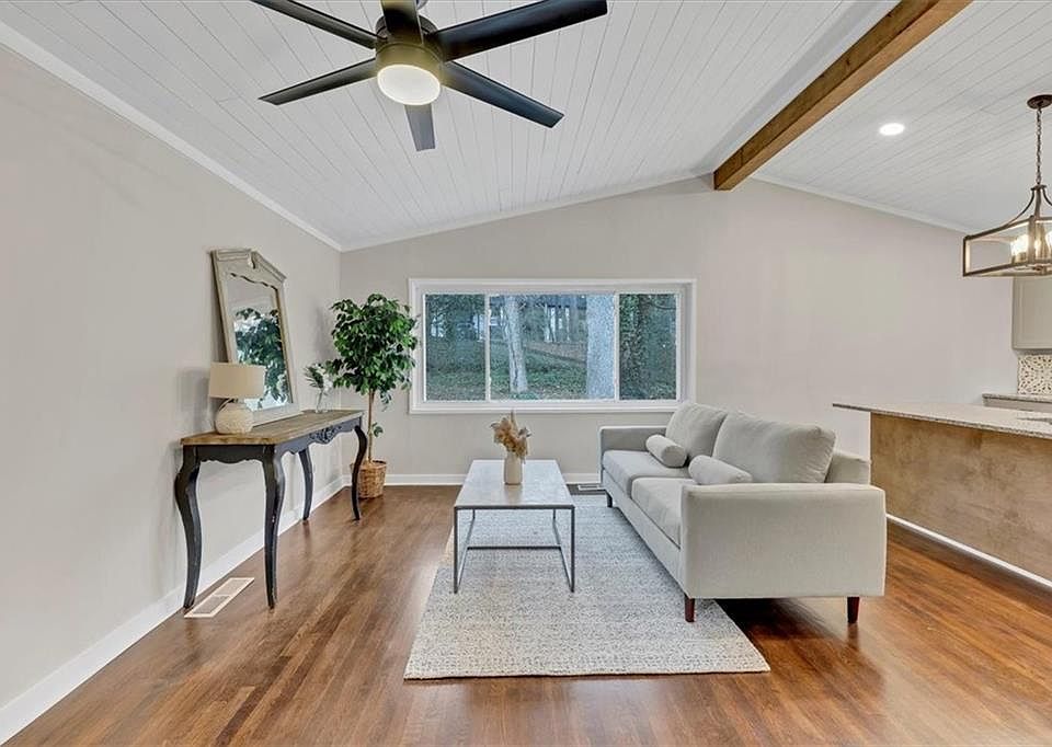 Welcome to your NEWLY RENOVATED home! When you walk in, you'll immediately notice beautifully VAULTED CEILINGS with SHIPLAP detail and a stunning faux EXPOSED BEAM. If you're looking for the best kitchen on the market, you found it! This CUSTOM kitchen features all NEW CABINETS, NEW GRANITE COUNTERTOPS, ALL NEW APPLIANCES, CUSTOM FLOATING SHELVES and a large ISLAND. Bathroom features include NEW TILE, NEW FLOORING, NEW VANITY/ MIRROR and NEW shelving. You will find ALL NEW light fixtures throughout the home, NEWLY stained hardwoods and BRAND NEW can lights throughout the kitchen and hallway. Outside, you will find a BRAND NEW front door, NEW railing/ posts, as well as a shed. Water Heater and HVAC both replaced in 2021, as well as new electrical throughout the home as of 2021. Come and see this gem, while it's still here!