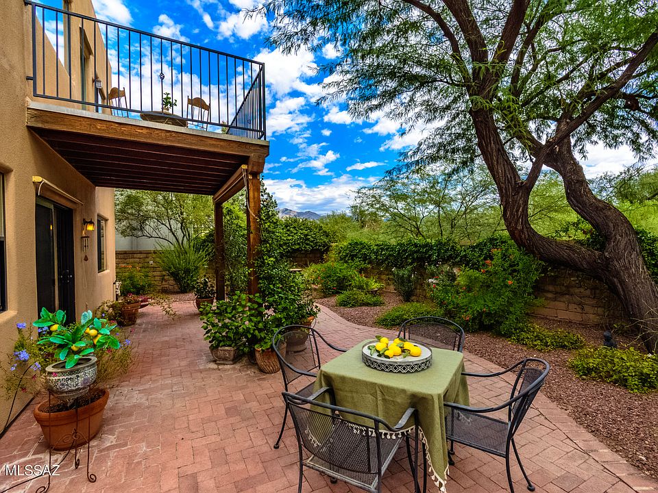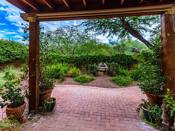 Gas fireplaceLush front courtyardStunning catalina mtn viewsSoaring viga beamed ceilingsWalk-in pantryExpansive covered patioArtistic custom security gate