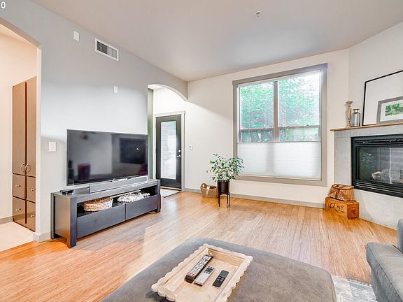 Exceptional end-unit condo with a beautiful open floor plan and high ceilings. This 2 bedroom, 2.5 bath home is LEED & Earth Advantage certified with hydronic forced air & solar water heating, stunning concrete counters, private Ipe deck, bamboo flooring, tons of storage in the heated attic space and large tandem garage. Enjoy the generous primary suite with amazing closet space and being a quick jaunt to Multnomah Village. Welcome Home!