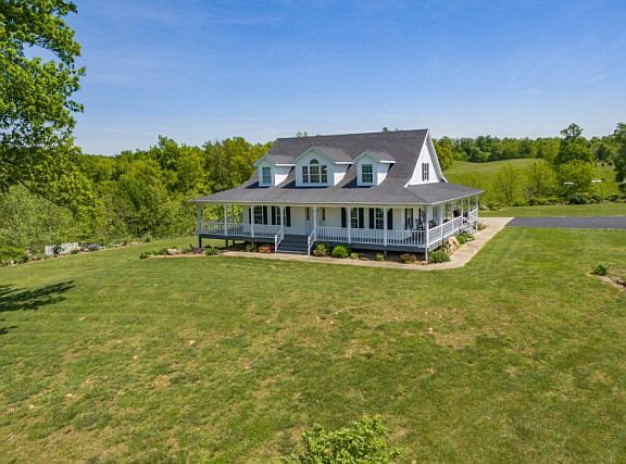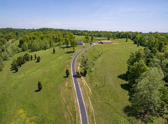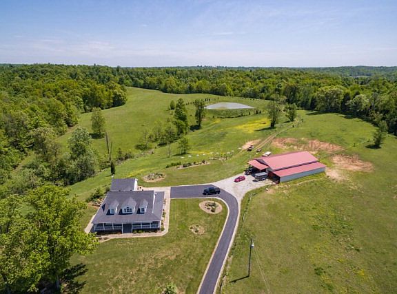 Picture Perfect Horse Farm! Stunning country home, with three bedrooms and two full baths, sits majestically on a hill overlooking 58 acres! Wrap-around porch, two-car garage, walk-out basement, paved driveway, geo-thermal, stocked pond and picturesque landscaping! 55x80 horse barn and shed includes 10 stalls, tack room and arena. This place is gorgeous!