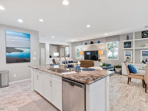 Fantastic Former Model Home in fast growing Inspirada loaded with upgrades throughout. Open floorplan with tons of windows for natural light. Pavered Driveway / Sidewalk, Large kitchen with Upgraded Cabinets, huge island, granite counters, upgraded Stainless Steel appliances, Upgraded window blinds with custom valances, Large Primary suite with dual walk in closets, upgraded Tub / shower surrounds, dual vanity , upgraded carpet in bedrooms, custom built in cabinets in Living / Dining room and 3rd bedroom, desert landscaping. Community Pools , Parks, Basketball, Playgrounds, and so much more , come take a look.