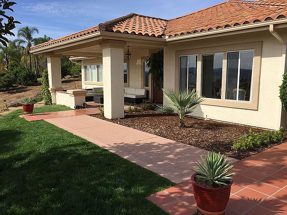 Custom built and designed family home with great floorplan; large rooms; separate master suite wing; kitchen remodeled with granite countertops and new appliances; two fireplaces; in-ground solar heated pool with water falls; gorgeous panoramic 270 degree east view of hills and mountains Valencia orange grove and family fruit trees.