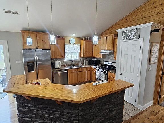 NEW PRICE!!! Custom-Built 3-Bed, 2-Bath Home on 2 Acres–Minutes to Weiss Lake! This beautiful 1,697 sq ft home offers the perfect combination of modern convenience and rustic charm. The open-concept layout and sleek cabin feel make you feel at home. Enjoy the stunning stone fireplace, custom pine hardwood floors, and kitchen island that adds both style and function. The picturesque views from the kitchen and dining area showcase the stunning 2-acre property. The spacious master suite and two additional bedrooms provide ample space for everyone. You'll love the extra touches throughout, including the separate workshop and two-car carport with additional storage. Ready to move in and enjoy.