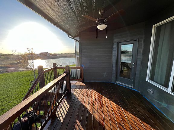 Welcome to this beautiful home located in the Valley Center school district! This home features all the best attributes compared to the other new builds surrounding it. For instance, this home sits on a huge, irregular lot that's located at the end of a cul-de-sac with a fenced in backyard. The backyard includes access to the fully stocked pond/lake and walking path as well. Entering the home you will notice the beautiful luxury vinyl flooring throughout the entire main level and basement. There are two electric fireplaces, one on the main level and one in the basement to add extra ambience upstairs and downstairs. The kitchen features a gas stove, granite countertops, granite sink, walk in pantry and soft close drawers/cabinets. Enjoy your morning cup of coffee on the covered deck overlooking the beautiful pond/lake in the peace and quiet. This floor plan offers a convenient layout that flows seamlessly from the laundry room to the master closet and master bathroom. The master bathroom features a large soaker tub, separate shower, double sinks and granite counters. Moving on to the basement, which offers the perfect space to host Super Bowl parties, move nights or family game nights in the large family room and walk up wet bar. The walk out basement at grade level is the perfect set up for hosting summer gatherings. If you are considering a newer build home, this home is move in ready and may be the perfect home for you! This home has a solar panel system installed with capability to transfer to the buyers.