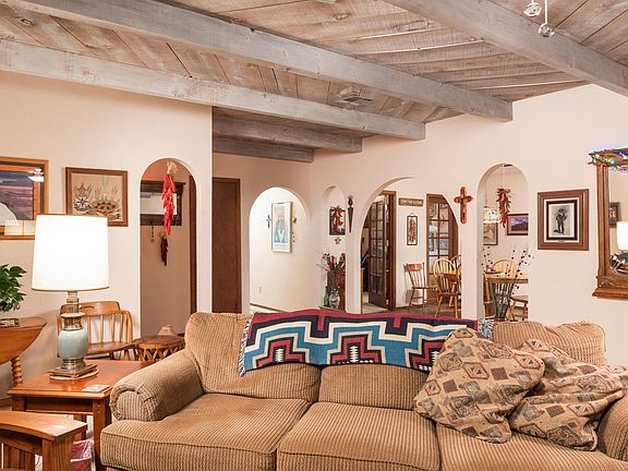 Well maintained 3 bedroom, 2 bathroom house in the Telshor area close to many of Las Cruces's amenities! Gated courtyard entrance leads into the wonderfully landscaped yard. Upon entry, the front door opens into a beautiful, Southwest styled great room with spacious dining, living and kitchen area accented arches throughout. The living area is tastefully trimmed with beamed ceilings, a fireplace, and leads out to a fantastic patio area with mature landscaping and mountain views. The 3rd bedroom can be flexible and used as an office or for extra living space. This home is well cared for and the outdoor living spaces make it one you won't want to miss. Call today for a showing and View the 3-D Tour!