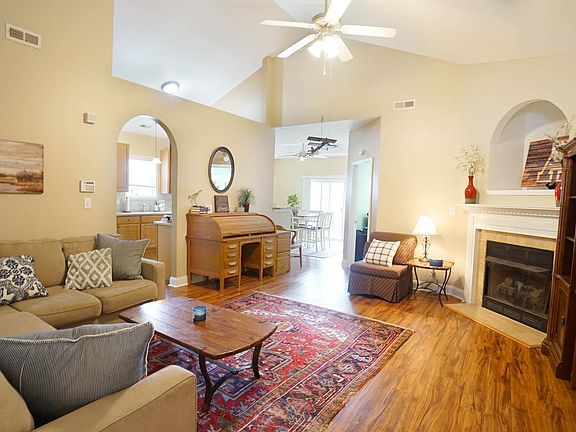 Adorable 3br 2bath hard to find RANCH home with 2 car garage in fantastic Raleigh location, adjacent to River Ridge Golf Community! Open floorplan with LVP floors, vaulted ceilings, gas log fireplace. Kitchen featues stainless steel appliances (refrigerator conveys), solid surface countertops, lazy susan, tile backsplash. Large primary suite with garden tub/separate shower, dual vanity. Fenced rear yard is private, perfect for kids or pets! Lawn and exterior maintenance taken care of by HOA!!