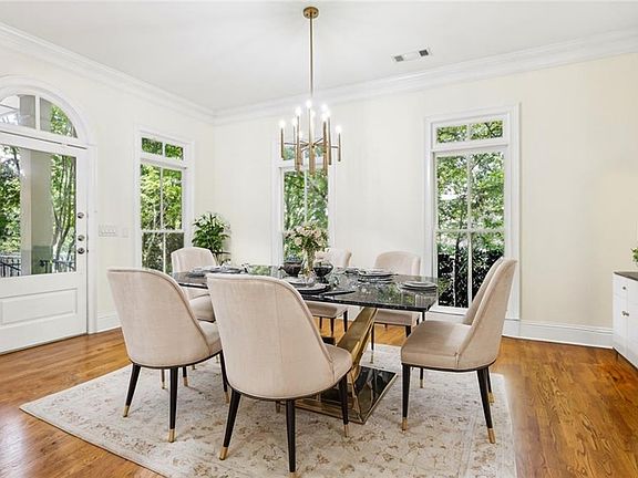 Welcome to refined luxury in the highly coveted Alexandria Townhome Community. This rare end-unit corner home features an extra wall of windows, flooding the open floor plan with natural light and showcasing new and refinished hardwood floors throughout. Thoughtfully designed with elegance and functionality in mind, the home offers a seamless flow and an inviting, sophisticated atmosphere. The custom chef’s kitchen is equipped with premium appliances, including a Dacor six-burner gas range, Bosch dishwasher, Broan Elite vent hood, Kohler cast-iron sink, and Everpure water filtration system. A virtually silent hydraulic elevator connects all three levels, while high-end finishes shine throughout—from the custom wrought iron staircase to the spa-like owner’s bath with quartz countertops, travertine floors, and Crema Marfil marble. This expansive floor plan includes three levels of luxury living. The second floor hosts an oversized owner’s suite with a fireplace and seating area, a full bathroom plus two guest bedrooms with patio access. The third level offers a private bedroom suite or flexible space ideal for entertaining, a home office, or a gym. Located on a prime corner lot facing Canter Road, this four-sided brick townhome feels like new construction with a new roof, new gutters. Set within a gated community of just 44 homes, residents enjoy lush landscaping, green spaces, and visitor parking—all minutes from Buckhead, Midtown, Downtown, and Virginia Highlands. This is more than a home—it’s a statement of luxury and an exceptional Atlanta lifestyle.