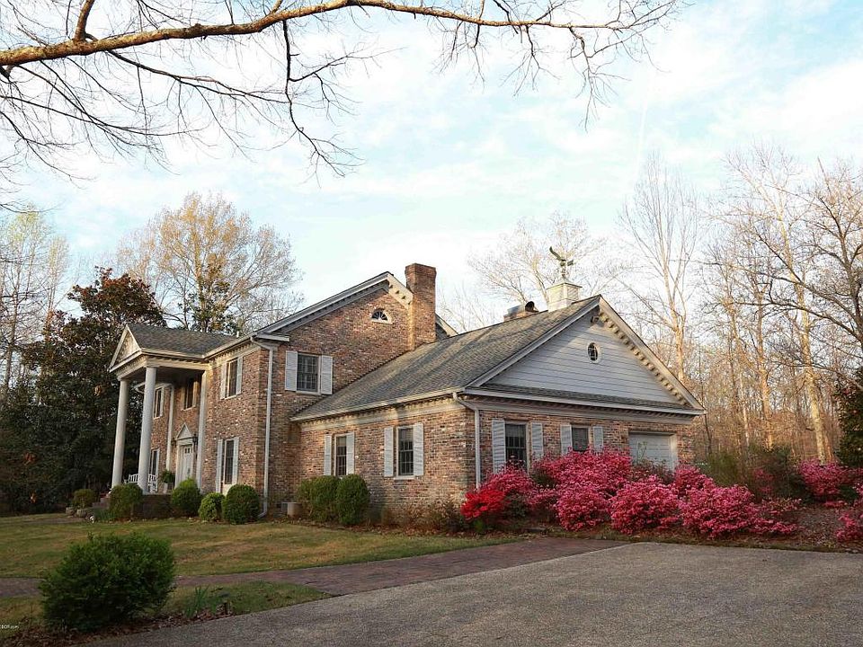 #3998-This 4BR/3.5BA home located on 7+/- acres has a stocked pond in front yard. Amenities: attached & detached garage, professionally landscaped, 2 family rooms, formal LR & DR, safe room, office, eat-in kitchen with corian countertops & stainless appliances, 3 F/P 2 w/gas logs. Upgrades: granite window seals, pella double windows, rock F/P, H/W floors, crown molding, new roof, 2 balconies.