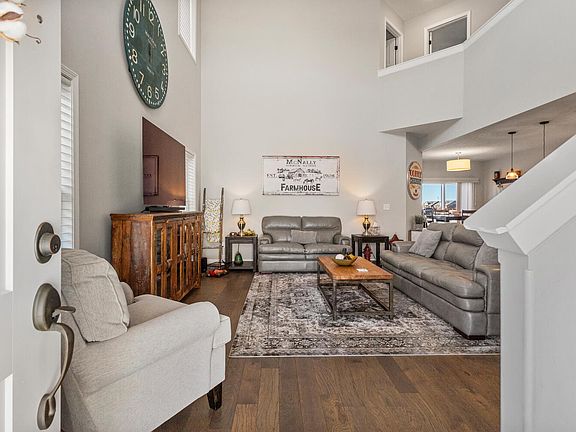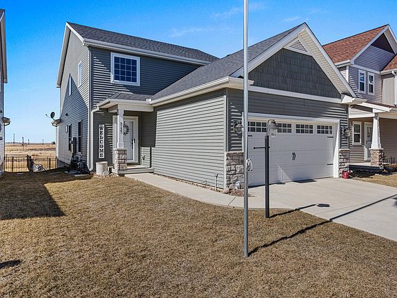Immaculate home with gorgeous sunset views. Located on a golf course this two story home provides - open concept floor plan, main level living space & spacious main level primary suite. A well planned 1776 total finish sq ft with full unfinished basement (electrical added to the basement). 3 bedrooms & 2.5 bathrooms. 2 Car Attached Garage. Trex Deck with extra patio area and fenced in backyard. Two story vaulted ceiling foyer and living area with ample windows to provide amazing natural light. Upscale cabinetry and Quartz countertops in kitchen & bathrooms. Kitchen has large island offering bar stool seating, tiled back splash & large pantry closet. Laundry room and garage entry area with custom locker unit for storage. Main level primary suite with large walk in closet, double sinks and custom tiled shower, barn door entrance to bath. 2nd floor loft overlooking the living area. These owners have gone to lengths to keep this home in pristine condition. Move in ready!