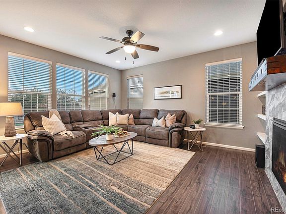 Welcome to this stunning 2-story home situated in the Sweet Grass Subdivision! As you enter through the front door, you will be greeted by the convenience of a coat closet and powder room. The open concept main level boasts a beautifully surround gas fireplace and mantel, built-in shelves, and a dining area. The well-appointed kitchen features a pantry, large island, upgraded light fixtures, dual ovens, and stainless-steel appliances. The primary bedroom on the second level features an ensuite bathroom, double sinks, and a walk-in closet. Two additional bedrooms, a full bathroom, a laundry room, and a loft that can be used as an office, flex, or lounge area complete the upper level. The basement is unfinished and has a radon mitigation system already in place, ready for your personal touch. Enjoy the fully fenced backyard with custom stamped walkway leading to it. Park your cars in the 2-car attached garage. Take advantage of the community swimming pool and covered picnic area for entertaining and relaxation. Conveniently located near parks, restaurants, shopping, and major routes for easy commuting to Denver, DIA, and Boulder. Schedule a showing of this home today to personally experience its charm and features!