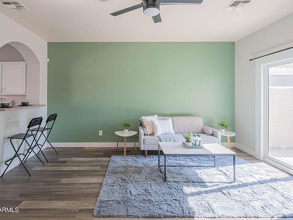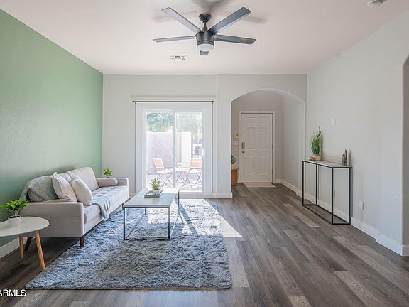 **LOCK AND LEAVE LIFESTYLE IN EAST MESA** Upgraded gem in the green and gorgeous Village at Hawes. This single level townhome features both a front courtyard and backyard, 3 sizable bedrooms and tons of natural light. Updated kitchen with refaced cabinetry, stainless steel appliances and sizable sink for large pots/pans. Primary bedroom suite features a walk in closet, wrap around shower and vanity/makeup area. Backyard features artificial turf, newer pavers and 3 hole putting green for backyard entertainment. Garage features Tesla Wall Connector, ample shelving and owned softwater system. Village at Hawes offers a community pool for residents to enjoy, along with prime proximity to US60 and 202. Located in close proximity to a myriad of shopping, dining and entertainment options - with Gilbert Gateway and Mesa Gateway Airport just a few minutes away