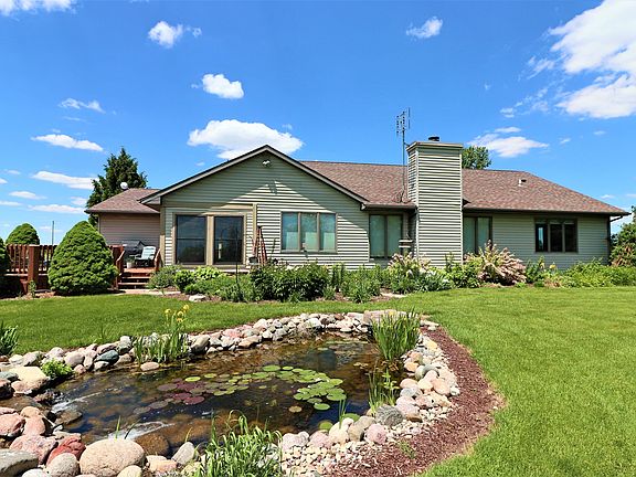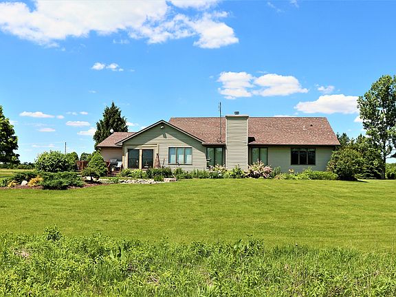 Beautiful country setting with great views, 5 acres and only a short drive from Lake Geneva. This one owner 3 bedroom, 2.5 bath, ranch-style home was built in 1996 by Thelen Builders and offers much in the ways of privacy, peace and happy homesteading. The home has a first floor spacious master w/ master bath/walk-in closet, 2 additional bedrooms, laundry, tray ceiling living room with natural fireplace, 3 season enclosed sunroom and full unfinished basement. The exterior includes deck, waterfall feature, manicured perennials, garden w/ pergola and walking paths. The property, along with a 3 car garage, allows any ambitions. The home has new single layer roof (2020) and has been meticulously cared for. Convenient access to HWYs for Milwaukee & Chicago and Lake Geneva Amenities!