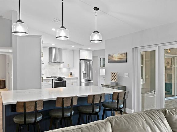 We are proud to present 3127 Sandy Ridge Dr located in the Countryside area of Clearwater. This home has been completely remodeled top to bottom, it is an amazing family home that is truly move in ready! It features an absolutely gorgeous kitchen (remodeled in 2020) with white cabinetry, double ovens, gas range, dry bar with wine cooler, quartz counters and this awesome island that is fantastic for entertaining purposes. It has two great rooms on each end of the kitchen one with a wood burning fireplace and both offering sliders out to the lanai/pool area. Master suite features a completely remodeled bath with walk in shower, dual closets with custom shelving, and direct access to the 4th bedroom making it a great nursery or office/den space. A true split floor plan with the two additional bedrooms on the other side of the home that share a hall bath. Vaulted ceilings, gorgeous new lighting, all wood look tile in the main house, custom shutters, crown molding, it is truly drop dead gorgeous. Many updates include new roof 2013, new HVAC 2017, natural gas appliances including a tankless hot water heater, new pool system, new landscaping, new wood and tile flooring throughout and the list goes on. Schedule your private showing today, this one won't last long!