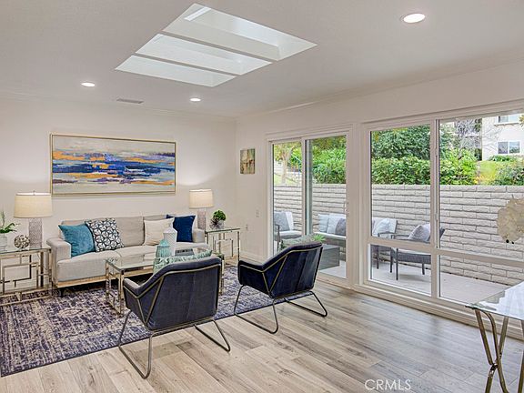 Delightful Casa Vista Condo with no-one above or below. This beautifully remodeled with 2 bedrooms, 2 baths, looks out on a serene greenbelt area. Amazing open concept as you enter the manor, notice the dual pane windows and sliders looking out on the oversize patio. Essential kitchen with impressive quartz countertops with an island, larger refrigerator, microwave, new range and LED recessed lighting. There is a stacked Washer & Dryer strategically located in the guest bathroom. Master bedroom boasts a large walk-in closet with organizers built in, and large walk-in shower. Guest bedroom has mirrored wardrobe doors. Tiled flooring in kitchen & bath. Interior features an added built-in multi-use closet for additional storage, attractive vinyl flooring, 2 skylights in kitchen & living room, smooth ceilings, the AC was installed last year... Enjoy all the amenities of this active 55+ community with 7 clubs houses, 27 hole golf course, par 3 golf course, restaurant, stables, tennis, lawn bowling, 5 swimming pools, over 200 clubs and a free external bus system. All of this while located close to freeways, shopping, medical facilities and about 7 miles to the beach!