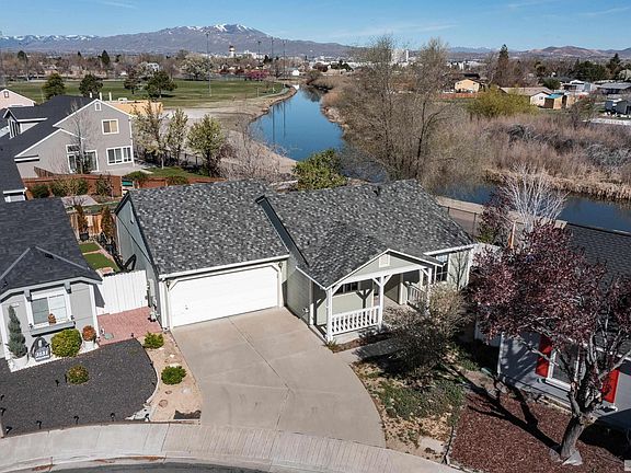 This charming single level 3 bed, 2 bath home is in a quiet neighborhood overlooking the Boynton Slough w/view of Peavine Mountain. Great location close to Mira Loma park, shopping, walking paths & easy access to Veterans Pkwy. Open floor plan w/ natural light, the kitchen has beautiful granite counters & plenty of storage. New furnace/ac was added in August 2023. Home has newer roof, both bathrooms have been updated w/lg showers. Spacious primary bedroom is separate from other 2 bedrooms., Primary bedroom features high ceiling, ceiling fan, double sinks, 2 closets and the large shower. Refrigerator, washer & dryer stay. If you enjoy the outdoors you will love this home. Enjoy sitting on your covered front porch or barbeques out on your back patio you will enjoy watching the birds, ducks and geese on the water.